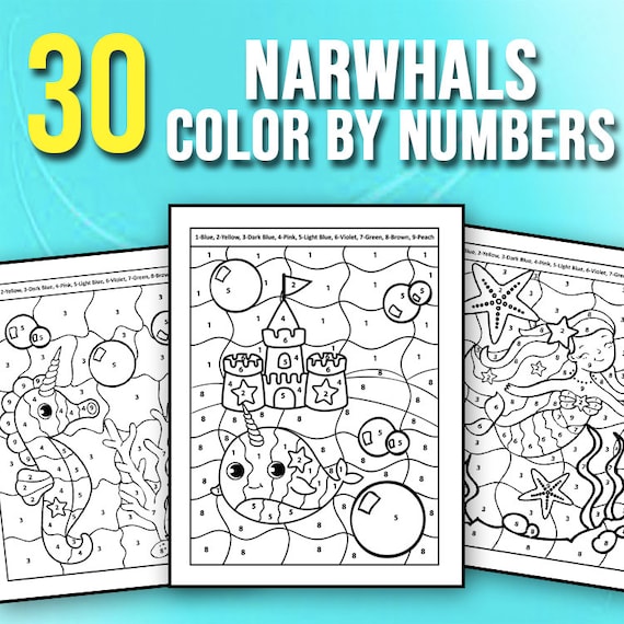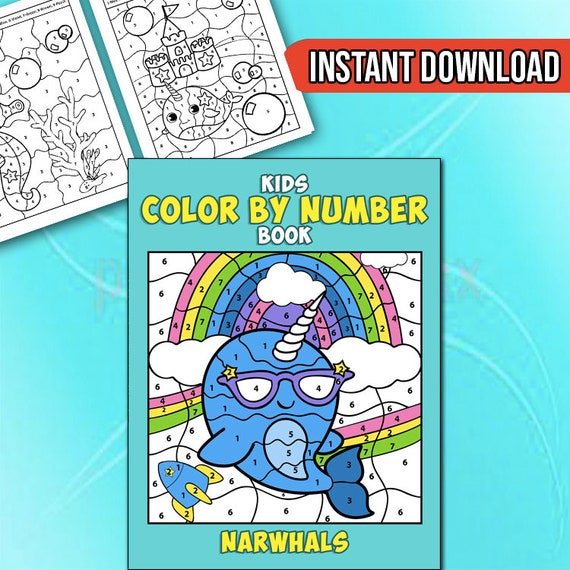 Best Value 30 Color By Number For Kids Narwhals Coloring Book Etsy