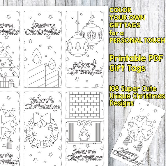 Best Value 108 Christmas Gift Tags To Color Merry Christmas Etsy